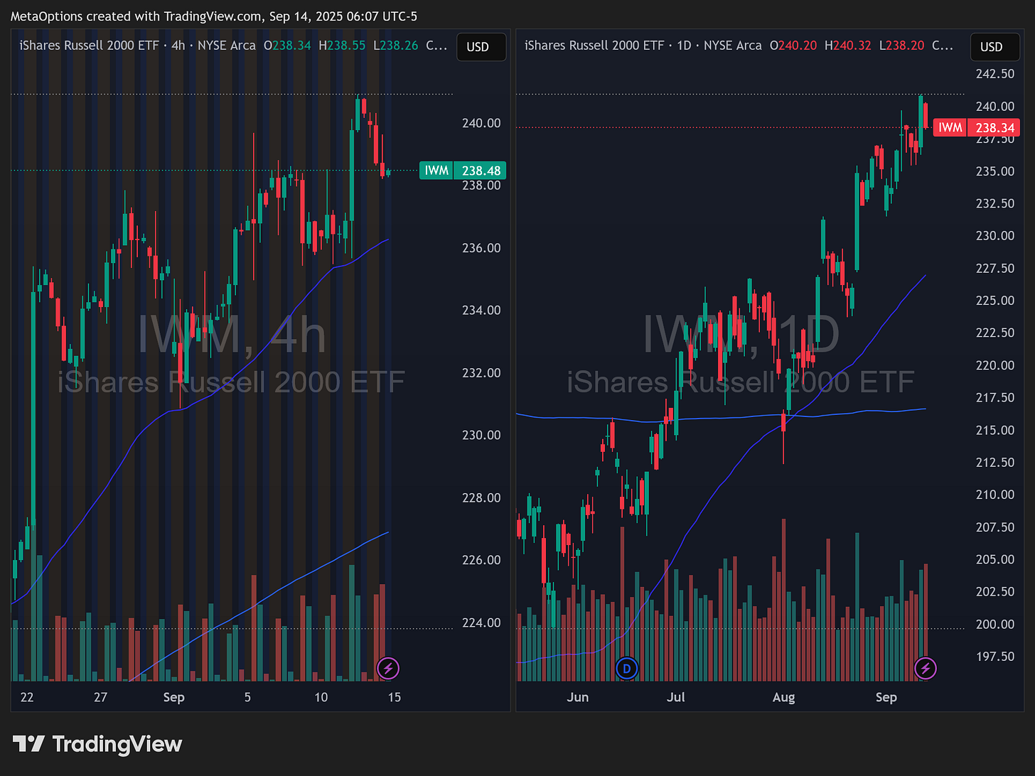 IWM: 236 to 237 as support. 240 to 241 as the breakout line.