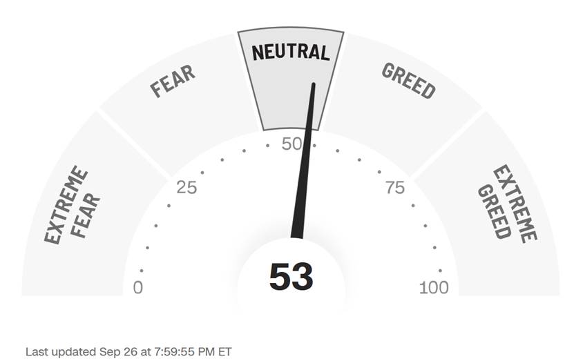 The Fear and Greed Index is 53 Neutral.