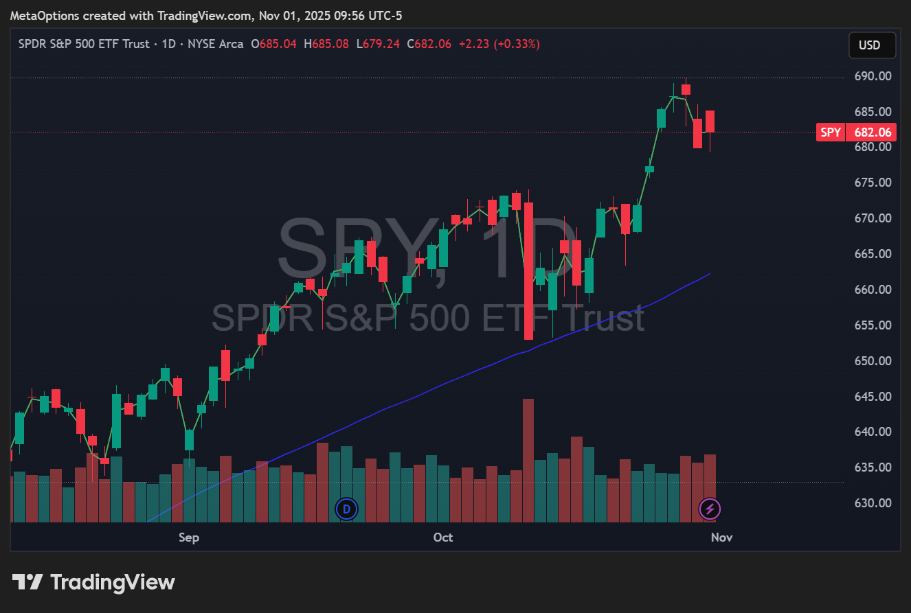 Watch $SPY 680 and $QQQ 625 this week. Lose those, and it’s risk-off into the jobs report. Hold them, and we might get one last squeeze into mid-November before the next CPI on the 13th.