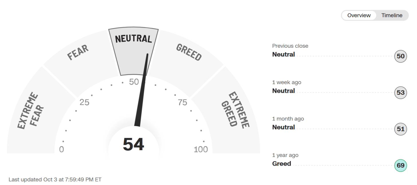 The Fear and Greed Index is 54 Neutral.
