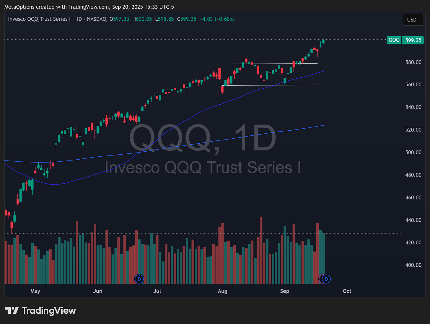 QQQ: 600 lid; 603–607 ext; 593–595 S, then 586–588 pivot, 580 deeper.