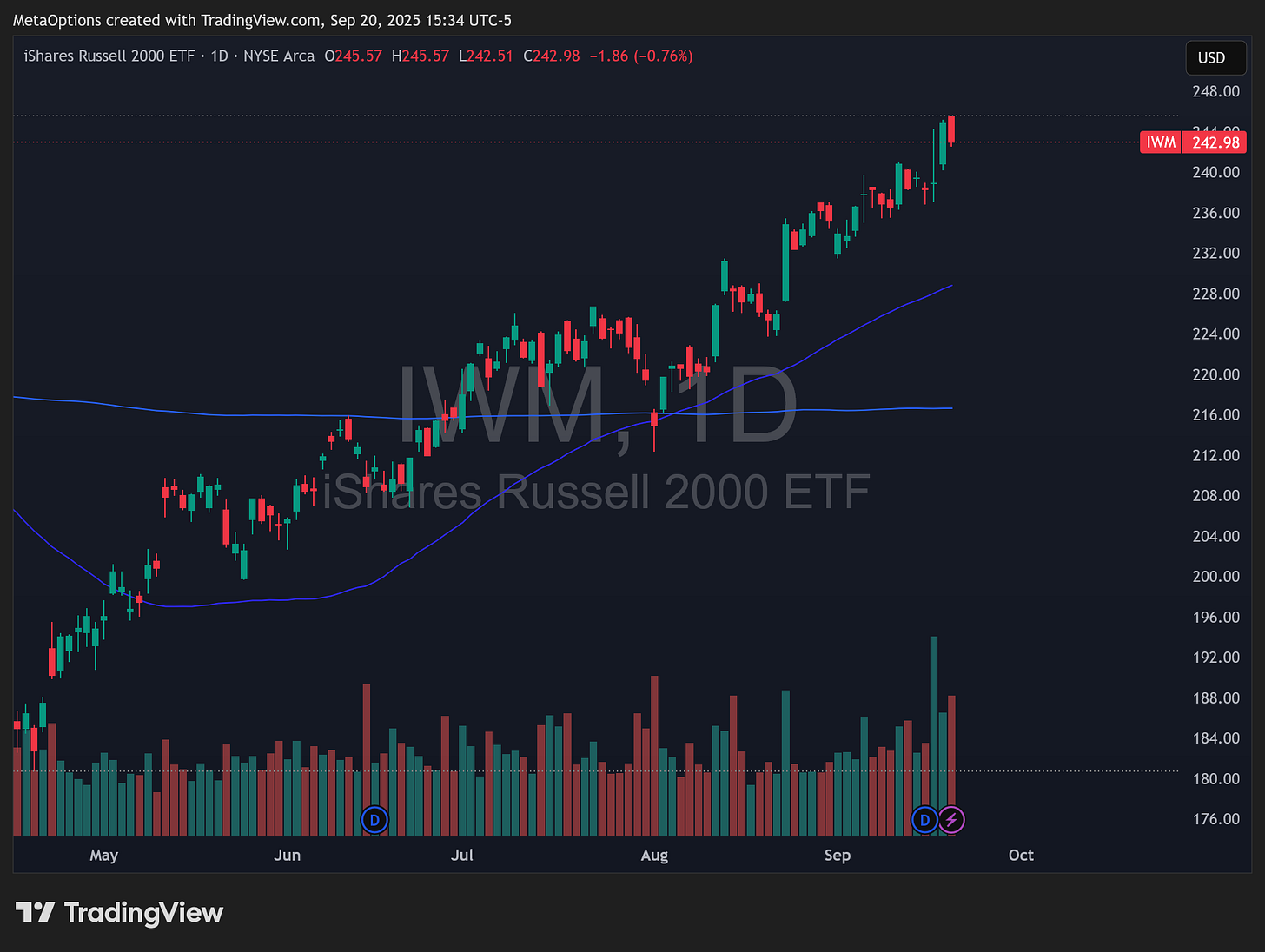 ✅IWM pushed through the 240/241 breakout and briefly probed 245 before cooling.