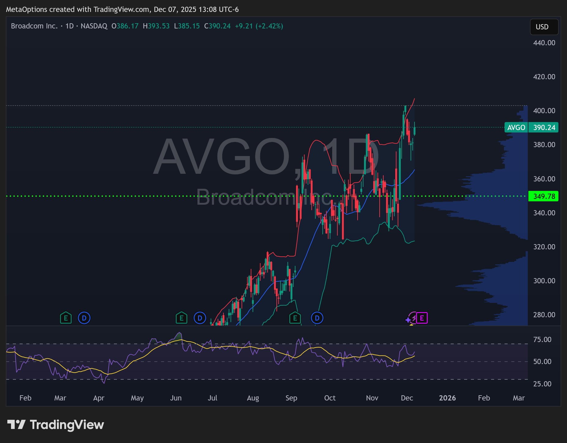 The Play: Look to sell OTM puts at the $350 support level to harvest the rich IV. If IV Rank > 50%, the premium is yours to keep